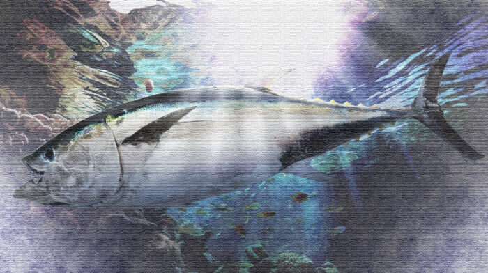 ・海中写真を背景にあしらい油絵のマリンアート風に仕上げたパターンです